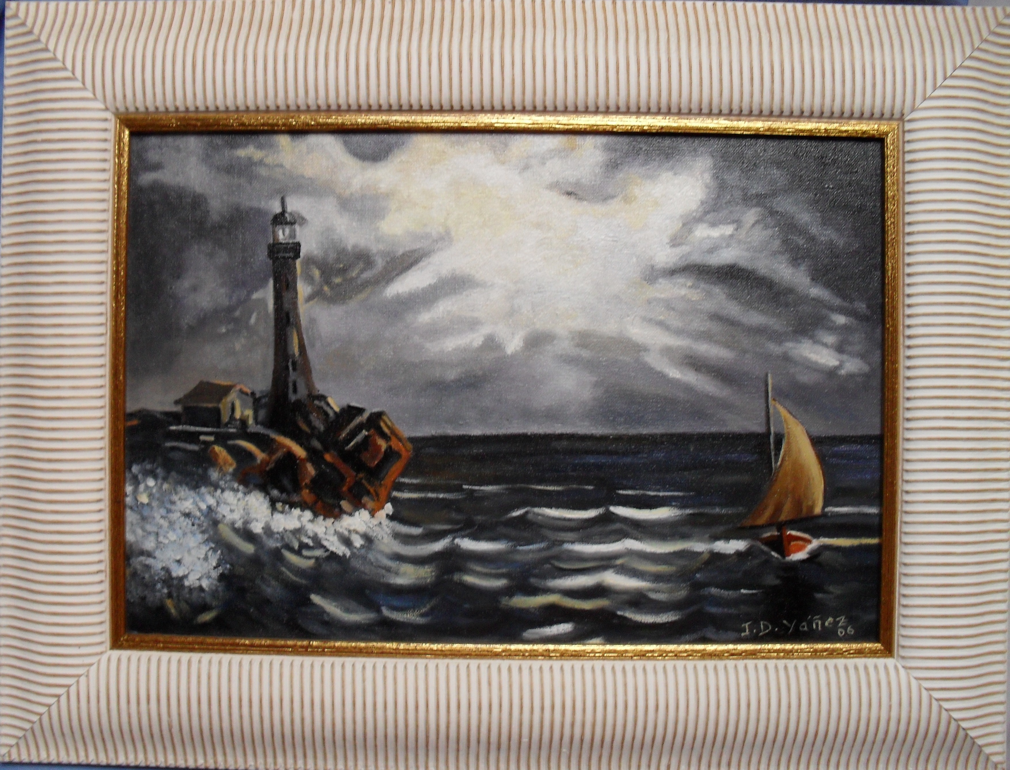 | Título: Faro Copia Tablilla entelada de 35 x 24 , enmarcado en madera óleo - pincel Precio: 260€ Ref:M5 |