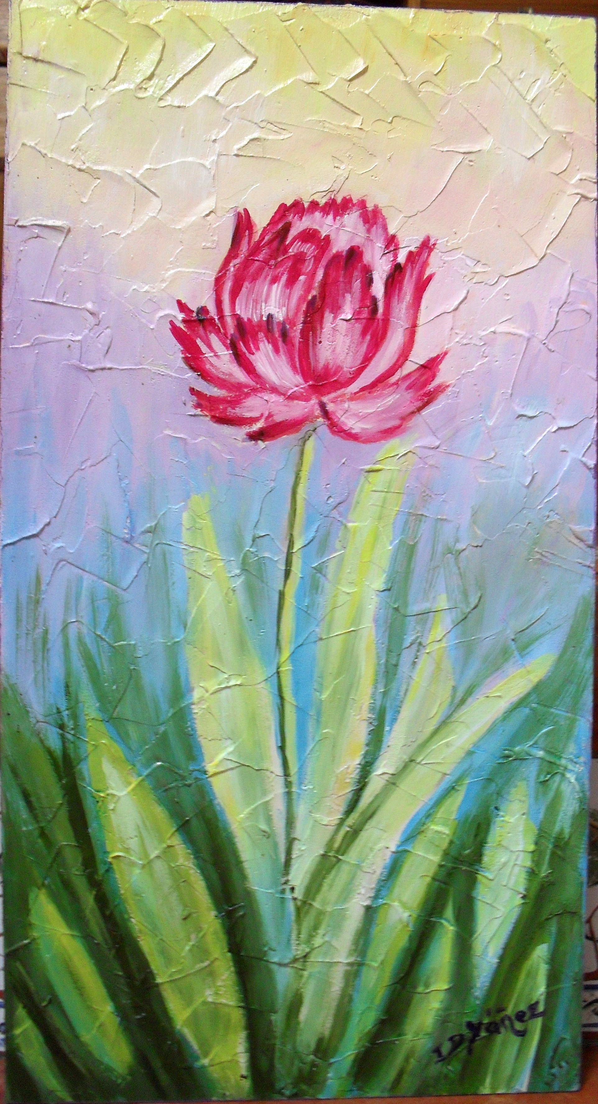 Tulipán fucsia Tablex de 24 x 45 cm Acrílico-pincel , sobre relieve de pasta gesso Colección particular Ref: FN10 |